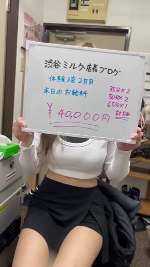 渋谷ミルク お給料☆ 皆さんこんばんは☆ Hです☆ 本日は 女性のお給料を 公開です!! 本日の接客人数は5名☆ そして 気になるお給料は!? 38200円です!! 本日は18時-23時の 5時間の出勤です! 本日が体験入店 2日目 スタートから 立て続けにご予約が 入り、途中で休憩を挟み…