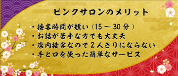 こんばんは!夢や目標を叶える事が出来るお店百花繚乱です♪ピンクサロンはソフトサービスですよ手と口を使った簡単なサービスになります接客時間も15~30分と未経験の方でも働きやすいと思います個室でもなく常にスタッフが要るので怖い思いをすることもありません照明も薄暗く丸見えになるってこともないです生理の日でも下半身のお触り…