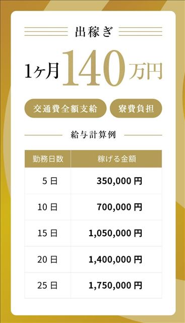★出稼ぎ期間中の日給保証制度あり!