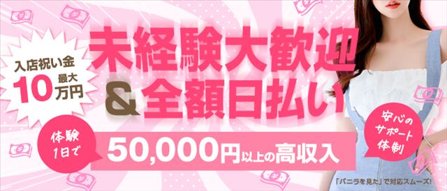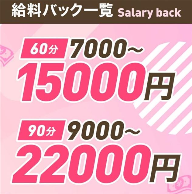 当店の平均日給は1日8時間出勤されると約4万円前後となります。1日の稼ぎが多くても少なくても必ず当日中にお渡しいたします。