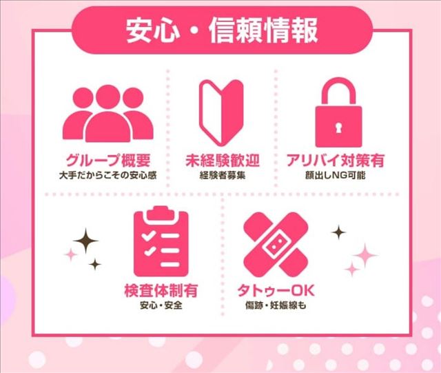 当グループではその実績と信頼で初めて働く未経験の方でもきちんと無理なく稼げるように経験豊富なスタッフ陣が貴女を完全サポートさせていただきます。新規オープンまもないお店ですが集客面ではまったく心配いりませんおかげさまで当グループにはすでに多くの会員顧客がおりますのでお客様が来なくてヒマということは断じてございませんので安心ください!