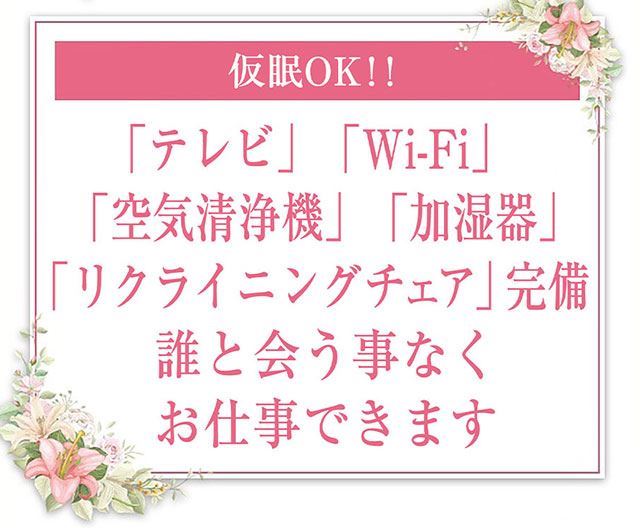 またWi-Fi完備なのでお仕事の合間や休憩するときは、通信料を気にせず写メ日記の投稿やYouTubeを見たりできます。