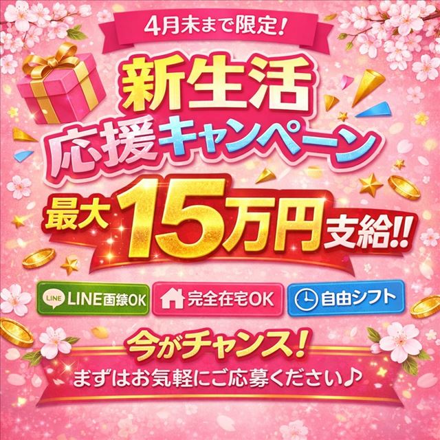 面接交通費あり!+4月中旬までは春の新生活ボーナス最大15万円支給中。