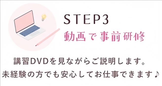 お仕事の流れは、講習DVDや言葉での説明を中心に進めるため、実技を伴う講習はありません。