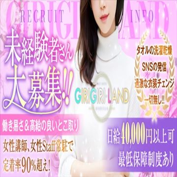 GIRIGIRILANDです✨初めてのメンエスでのお店選びは慎重になってしまいますよね。。。GIRIGIRILANDなら!!経験者さん!未経験者さん!大大大歓迎です♪女性スタッフ並びに講習担当の講師さんも女性ですので分からない事・デビューに向けての不安・悩みも打ち明けやすいです☆また、スタッフ総出で全力サポート致しま…