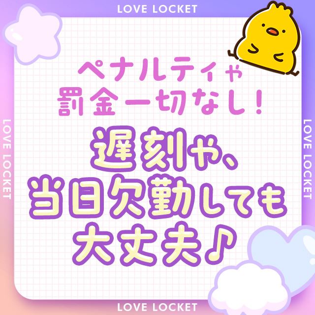 ペナルティなし:遅刻や当日欠勤による罰則は一切ありません。気軽に働けます。